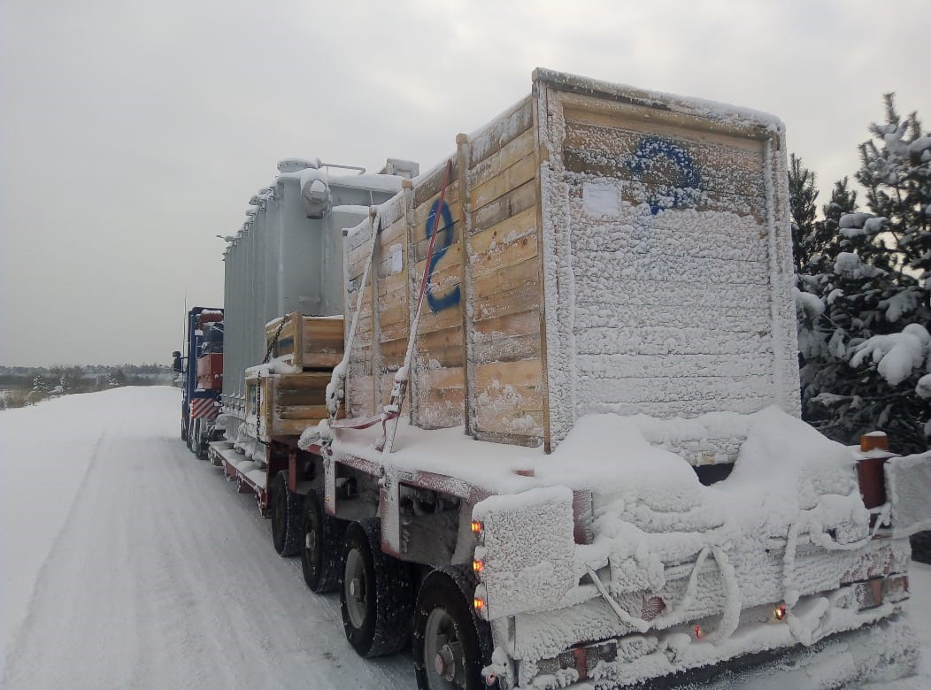 Компания STS Logistics для клиента «ПОЛЮС» организовала автомобильную доставку тяжеловесного негабаритного трансформатора с оборудованием общим весом 75,7 тонн и габаритами 6400х2690х4450 мм.